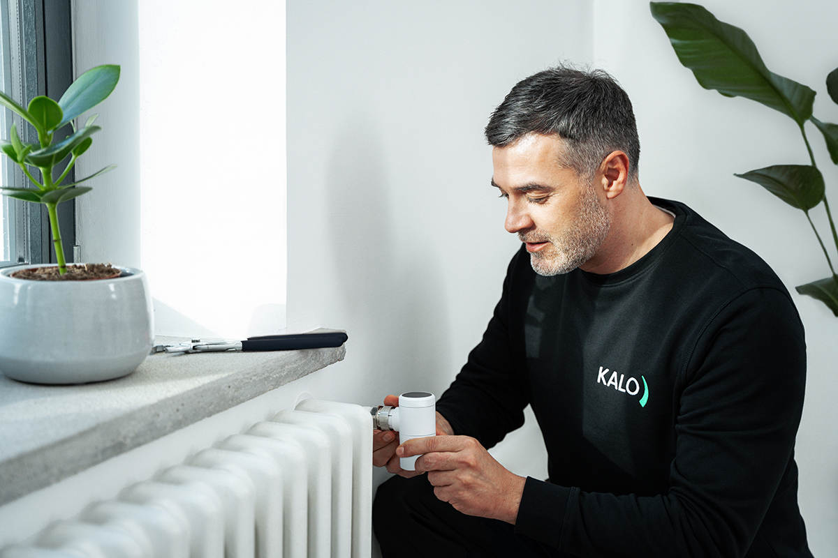 Mit den smarten Thermostaten von KALO erfolgt der hydraulische Abgleich laufend automatisch und basiert auf dem tatsächlichen Wärmebedarf jedes einzelnen Raumes. Die retrofit-fähigen Geräte werden unkompliziert und ohne Eingriffe in die Heizungsanlage installiert. Einmal eingebaut, erfassen die im Verbund arbeitenden smarten Thermostate gebäudeweit kontinuierlich die Temperaturverläufe in allen Räumen, passen ihre Ventilöffnungen dynamisch an und steuern die jeweils optimalen Heizwassermengen automatisch. Auf Basis dieser gebäudeweiten Datengrundlage regelt das Gesamtsystem adaptiv die maximale Ventilöffnung, sodass die verfügbare Wärme gleichmäßig verteilt wird und alle Räume bedarfsgerecht versorgt sind. Dadurch kann das System auch auf Veränderungen am Gebäude oder an der Heizanlage reagieren und sicherstellen, dass das Heizsystem jederzeit effizient und optimal arbeitet.